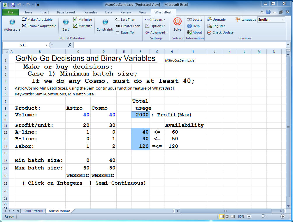Make or buy decisions:Case 1) Minimum batch size; If we do any Cosmo, must do at least 40.