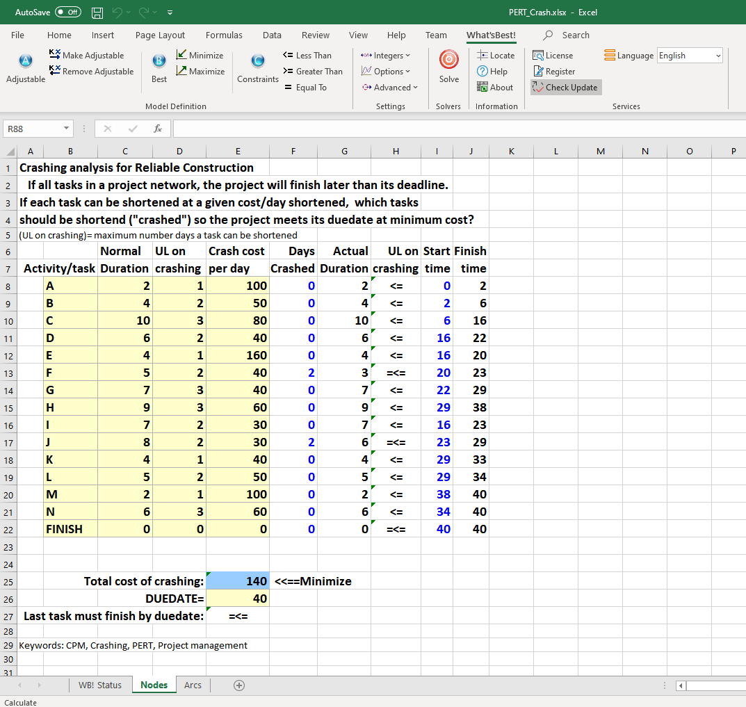 should be shortend ("crashed") so the project meets its duedate at minimum cost?