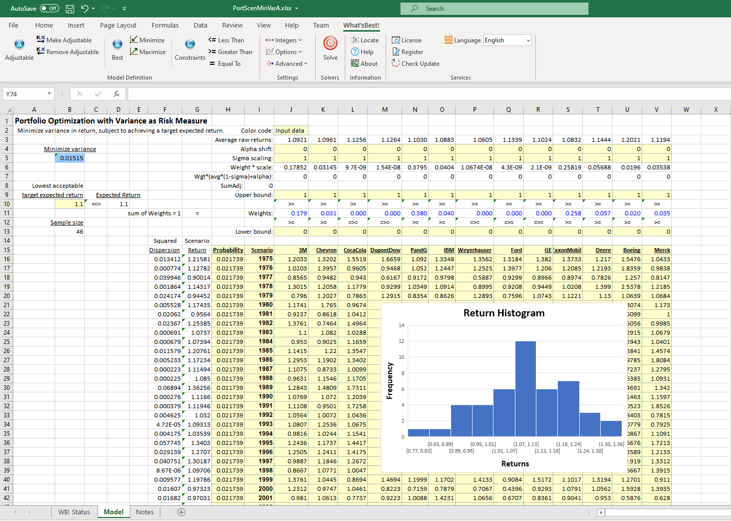 var = sum(Scenario probability*(Avg-scenario return)^2)