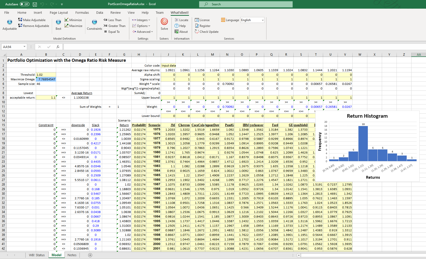 One definition of the Omega ratio is: (Expected Return above threshold)/(Expected return below threshold), or E[ MAX(0, R-tau)]/E[ MAX(0, tau-R)] where R = return( a random variable) of the portfolio, tau = a specified target or threshold return Now, MAX(0, R-tau) = R-tau+MAX(0,tau-R) so in terms of expectations E[MAX(0,R-tau)]/E[MAX(0,tau-R)] = (E[R] -tau + E[MAX(0,tau-R)])/ E[MAX(0,tau-R)] = (E[R] -tau )/ E[MAX(0,tau-R)] + 1 Notice the similarity to the Sharpe ratio: (E[R] -tau )/SD( R), where SD is Standard Deviation. So the Omega ratio and the Sharpe ratio effectively differ only in how risk is measured in the denominator. Effectively, the Sortino ratio uses the semi-vriance as the risk measure.