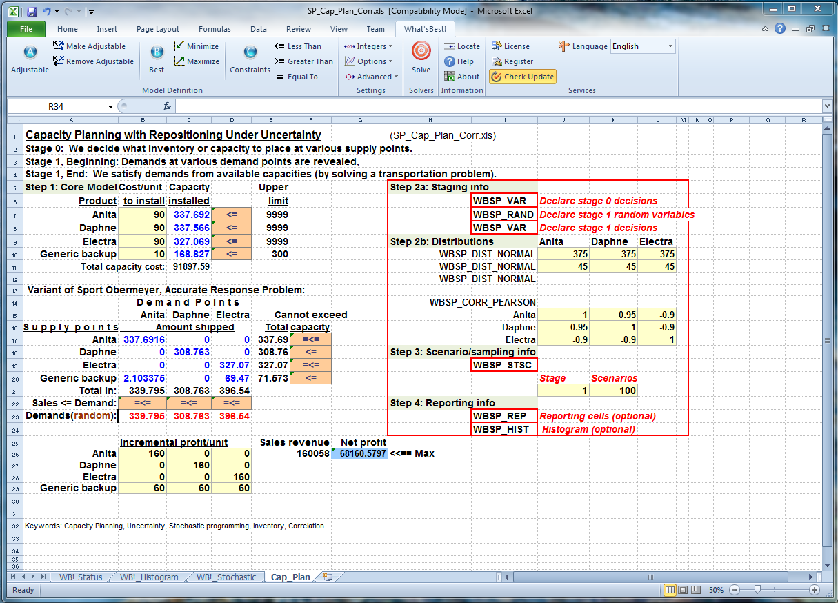 Stage 0: We decide what inventory or capacity to place at various supply points.